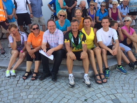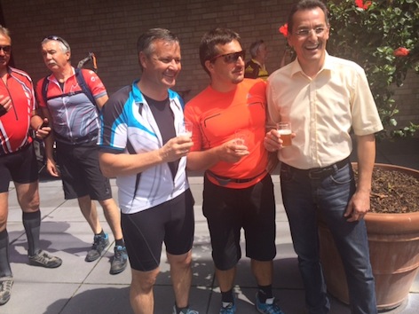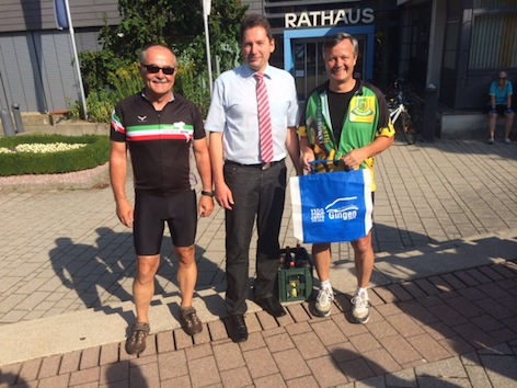 Rathaus: Bürgermeister Jochen Reutter und Klaus Riegert mit dem Tour de Kreisle Tross