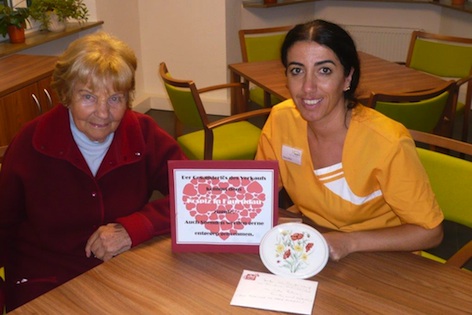 Lotte Bühner ist Faurndauerin und Künstlerin. Sie verkaufte am 1. Advent von ihr bemaltes Porzellangeschirr auf dem Faurndauer Weihnachtsmarkt und brachte in diesen Tagen zusammen mit ihrer Freundin Liliana Schunter den gesamten erzielten Erlös von 300,00 € an Hospizleiterin Marta Alfia. Sie begründete ihre Großzügigkeit, dass sie die Arbeit des Hospizes sehr schätze und viel Positives über das Hospizteam und das Hospiz höre. Marta Alfia freute sich nicht nur über die von Frau Bühner mit viel Herzblut erarbeitete Spende, sondern auch über die wunderschöne Wertschätzung der Arbeit des stationären Hospizes durch Frau Bühner.
