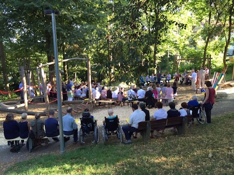 Bürgermeister Daniel Frey mit Sohn, Herr Staub, Klaus und Dagmar Riegert, Markus Rehm, Hospizleiterin Marta Alfia
