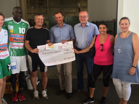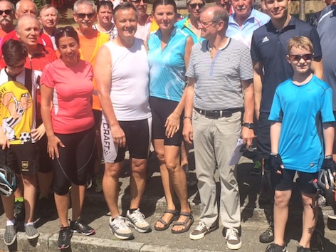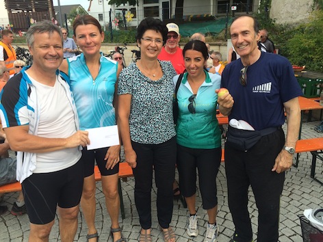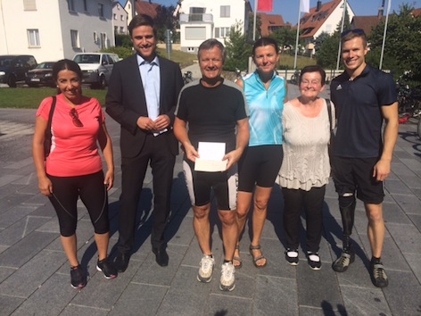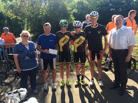 Klaus Riegert, Fa. Krauter Florian Köpf (radelte anschließend mit) und Garvin Hamberger, Thomas Schaich TSG Eislingen
