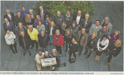Ein vorgezogenes Nikolausgeschenk erhielt Hospizleiterin Marta Alfia von Volksbank-Vorstand Hermann Sonnenschein – einen Scheck über 3.000 €. Dies bereitet beim stationären Hospiz große Freude, ist es doch der Grundstock für die Finanzierung der FSJ-Stelle für das kommende Jahr. In diesem Jahr wurde die Stelle für ein Freiwilliges Jahr von jungen Menschen durch die NWZ-Weihnachtsaktion ermöglicht. Das Team und die Gäste haben mit Simon, dem derzeitigen „FSJ’ler“, so tolle Erfahrungen gemacht, dass sie auch im kommenden Jahr wieder ausgeschrieben werden soll. Der jährliche Aufwand dafür liegt bei knapp 10.000 € was über die Krankenkassen nicht finanziert wird. Der Volksbank gilt dafür der beste dank des stationären Hospizes in Faurndau.