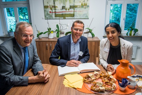 Foto Gia Carlucci – v.l.n.r: Hospiz-Geschäftsführer Georg Kolb, Dr. med. Ingo Hüttner, Hospizleiterin Marta Alfia 01.08.2017 – Fa. Tebis – 1.500 € Spende vom VDWF-Grillfest