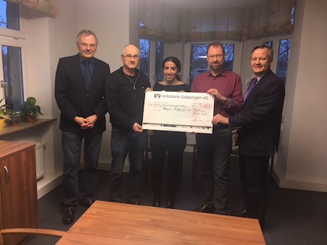 Überrascht wurde das Hospizteam von Bettina Weidenbach aus der gleichnamigen Eletrofirma aus Adelberg. Sie überreichte Isabella Balzasch für das Hospiz einen Scheck über 500 €. Frau Weidenbach betonte, ihre Firma würde seit vielen Jahren auf Kundenweihnachtsgeschenke verzichten und an Stelle dessen soziale Projekte unterstützen. Im vergangenen Jahr habe sie persönlich erlebt, welche beeindruckende Arbeit im stationären Hospiz geleistet würde, wie respektvoll und warmherzig der Umgang mit allen Beteiligten sei und welchen Halt auch die Angehörigen erfahren würden. Deshalb hätte ihre Firma gerne die Spende nach Faurndau überwiesen. 28.02.2017 – Börtlinger Grünkohlwanderung des CVJM erbrachte 4.680 € Spenden Rüdiger Höwler stammt aus dem hohen Norden, ist zwischenzeitlich in Börtlingen heimisch geworden und ist seit Jahren Organisator der Börtlinger Grünkohlwanderung des CVJM. Er und des Kassier des CVJM, Gert Nonnenmacher, überbrachten den Erlös und weitere Spenden von insgesamt 4.680 € ins Hospiz nach Faurndau. Am letzten Januar Sonntag waren 60 Teilnehmer, darunter auch MbB Heike Baehrens mit 12 von der Zachersmühle zur Verfügung gestellten Eseln rund um den Adelberger Stausee unterwegs. Die mitwandernde Kinder hatten riesigen Spaß und lernten das Verhalten der Esel kennen. Unterwegs gab es Glühwein, Punsch und Schmalzbrot. Im evangelischen Gemeindehaus wurde dann Abschluss mit Grünkohl und Linsen gefeiert. 2.800 € kamen an diesem Tag zusammen. Rüdiger Höwler sammelte darüber hinaus Spenden verschiedener Firmen. Klaus Riegert bedankte sich für diese großartige Unterstützung im Namen des gesamten Hospizes.