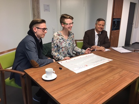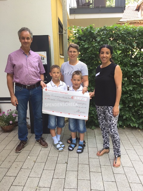 19.04.2017 – Von „Hospifiz“ kommen 5.000 € Julian Reichl aus Deggingen hat im November letzten Jahres in der Waldorfschule in Faurndau ein Benefizkonzert („Hostifix“) für unser Hospiz veranstaltet. Er organisierte diese aufwendige Veranstaltung im Rahmen seiner Jahresarbeit für seine Schule. Unterstützt wurde er dabei im großen Umfang von seiner Mitschülerin Ronja Eberspächer. Die beiden übergaben nun den Erlös der Benefizveranstaltung von rund 5.000 € an Klaus Riegert, Marta Alfia und Georg Kolb – Herzlichen Dank. (siehe auch „Presse“)