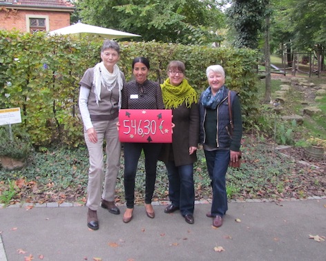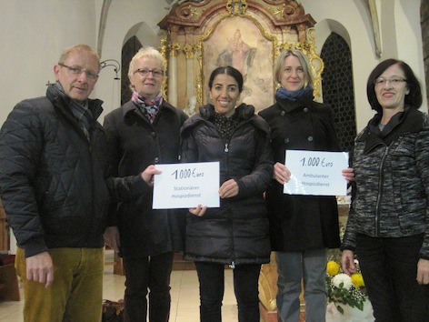 Pfarrer Bernhard Schmid, Petra Löwenthal und Marta Alfia (stationäres Hospiz), Birgit Göser (ambul. Erw.Hospiz), Maria Hieber (Krankenpflegeverein) 26.10.2017 – Klara Ott vermacht dem Hospiz 150.000 €