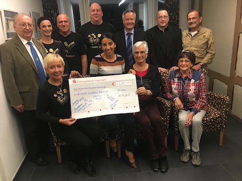 15 bis 20 Göppingerinnen treffen sich zweimal monatlich im Bürgerhaus in Göppingen zum Stricken. Die Strick- und Hägelprodukte werden beim Göppinger Stadtfest zum Verkauf angeboten. Der Erlös von 546,30 € wurde an Hospizleiterin Marta Alfia überreicht. Sie bedankte sich im Namen des Hospizteams für die Spende und den künstlerisch gestalteten Scheck und lud sie ein immer wieder zu kommen. 07. Oktober 2017 – „Musik ist Trumpf“ – Benefizkonzert in der TV-Halle in Faurndau