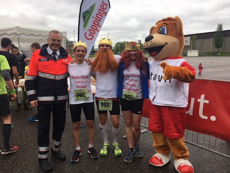 Ein erfolgreiches Team zum zweiten Mal im Hospiztrikot – v.l.n.r.: Markus Bucks, Andreas Cerrotta und Carmen Lang flankiert von Georg Kolb (in Malteser Dienstkleidung) und „Staufi“. Nicht auf dem Bild der Vierte im Läuferteam: Matthias Häderle. 02.05.2017 NWZ – "Rote Bärte laufen für das Hospiz Göppingen" ![]() Markus Brucks (rechts) löst auf diesem Bild Marco Höpfner im Staffelteam "Rote Bärte laufen für das Hospiz Göppingen" ab. 20.04.2017 – Giacinto Carluzzi – „Leben im Hospiz“ – Letztes Jahr waren die Bilder von NWZ-Fotograf Gia Carlucci im Haus der Familie in Geislingen von den Besuchern mit einer tollen Resonanz aufgenommen worden. Jetzt wurden sie vom Grafikunternehmen Uwe Hettrich (Jebenhausen) auf 10 „Rollups“ im Großformat neu aufgearbeitet. Premiere hatte die Ausstellung, die in dieser Form auch als Wanderausstellung an weiteren Orten präsentieret werden soll, bei den Hospiztagen 2017 in Geislingen. Dort können die Bilder im „Eingangsbereich“ der Helfensteinklinik bis 30. Juni 2017 täglich angesehen werden. Ein besonderer Dank gilt Giacinto Carlucci und Uwe Hettrich.