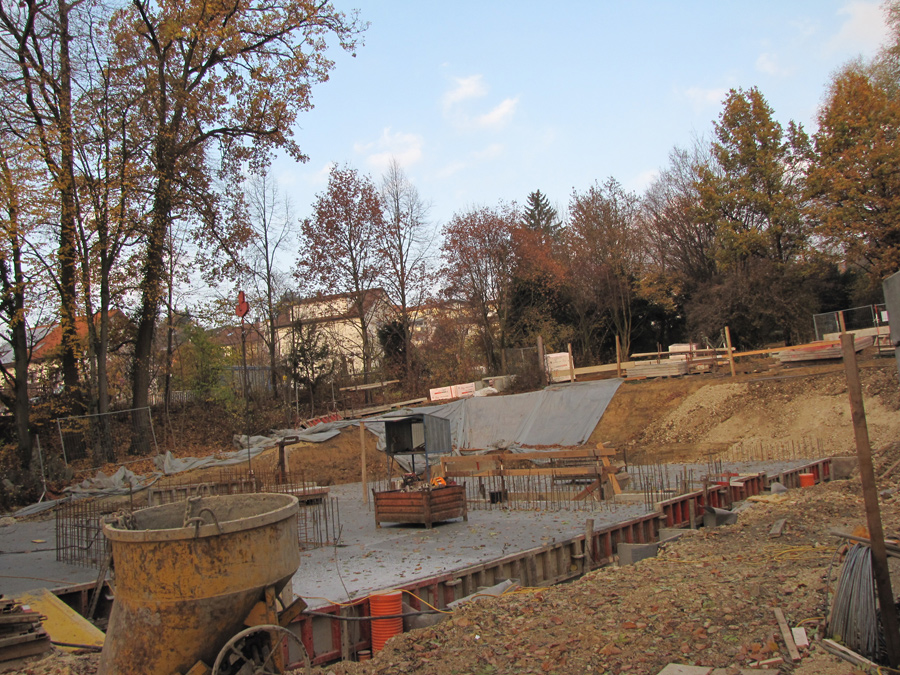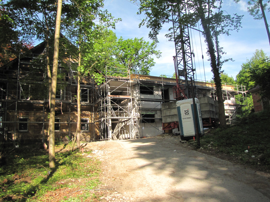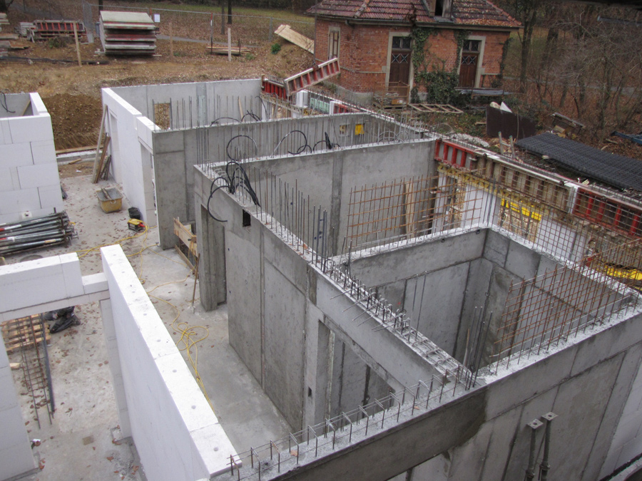 Google Map Link Bilder zum Baufortschritt: Ein Haus des „zur Ruhe kommen“, mit viel natürlichem Licht, das zu einer offenen Haltung und Freundlichkeit beiträgt. Alle Innenräume und Zimmer erhalten eine Wohlfühlatmosphäre durch entsprechendes Material und Oberflächenwahl, gewisse Großzügigkeit und Sonnenlicht. Spezielle Einrichtungen in den Bettenzimmern (Schalldicht, Blickmöglichkeit für reine Liegendpersonen, usw.) sind integrierter Bestandteil, wie auch generelle Behindertengerechte Ausstattung. Ein Teil der Zimmer ist mit einem kleinen Balkon ausgestattet. Mittelpunkt und Herzstück ist der Eingangsbereich mit dem „Raum der Stille“ und zugeordnetem Außenbereich, sowie der Küchen- und Essbereich. Weiter im Erdgeschoss untergebracht sind ein Gästezimmer, mit separatem Außen-Zugang, sowie Büro- und Verwaltungsräume. Die weiteren Funktionsräume wie Pflegebad, Personalaufenthaltsräume, Abstell- und Lagerräume, Technik, etc. befinden sich im Untergeschoss. Die Bettenzimmer sind ab dem 1. Stock angeordnet (pro Stock 4 Zimmer) mit einem Aufsichtsbereich (wirtschaftliche Betriebsweise gesichert) Das jetzige Konzept geht von 8 Pflegezimmern aus, könnte aber jederzeit durch weitere Stockwerke erhöht werden. Architekturbüro fai Peter Welz Ansicht des Gebäudes von oben: