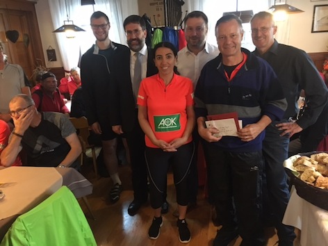 Begleitende „Promi-Sportler“: Landratsamt Göppingen, Landrat Edgar Wolf und Gemeinde Albershausen Bürgermeister Jochen Bidlingmaier. Rathaus Göppingen - Oberbürgermeister Guido Till Kreissparkasse Göppingen - stellv. Vorstand und Pressesprecher Thomas Wolf Architekturbüro fai Peter Welz, Göppingen Fa. makra Norbert kraft GmbH, Göppingen Gemeinde Heiningen - BM Norbert Aufrecht, Gemeinde Eschenbach - BM Thomas Schubert, Lebenshilfe Heiningen GF Uwe Hartmann Starenschnäbel Heiningen Norbert Roth und Jannette Roth Gemeinde Gammelshausen - Bürgermeister Daniel Kohl Kurhaus Bad Boll - Bürgermeister Rudi Bührle, Rehaklinik Geschäftsführer Dr. Christoph Wagner und Birgit Kälbling Gemeinde Zell u.A. - Bürgermeister Werner Link 24. – 28. Juli 2017 - „Tour de Kreisle“ 3. Tag