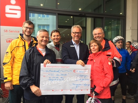 Getränkemarkt Stolz weitere Presseartikel zur Tour de Kreisle 2017 finden Sie unter Presse Tour de Kreisle endet mit neuem Spendenrekord Kreis Göppingen Täglich fuhren 40 bis 55 Radler bei Regenwetter durch den Kreis, um für das Faurndauer Hospiz Spenden zu sammeln.